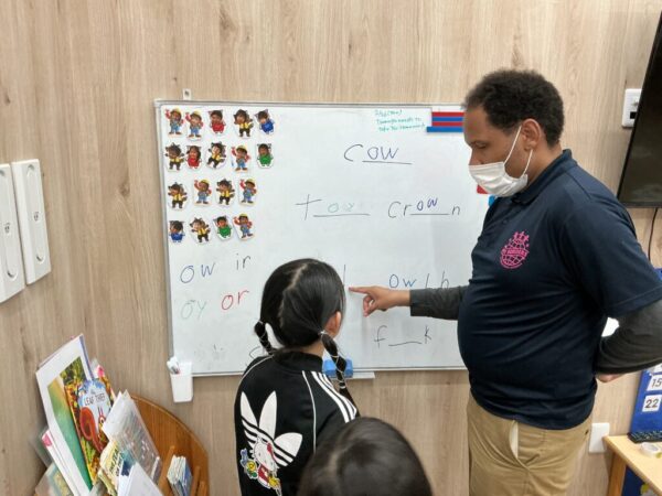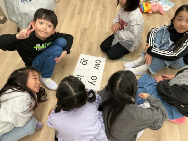 フォニックスも難易度が上がりました。Kenzel講師の発音と今までの練習の記憶を頼りに、穴埋めをしていきます。