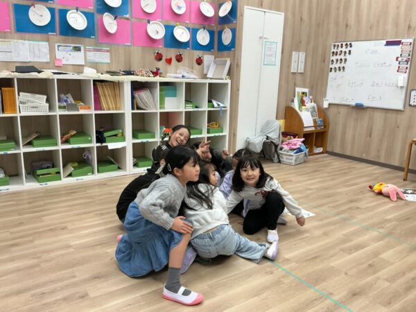 クラスを円になって歩いてまわり、Kenzel講師に指定された子どもが単語を一つ言い、その周りに素早く集まります。