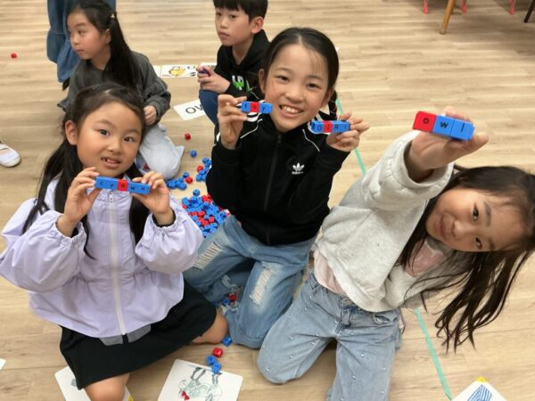 楽しく覚えられるよう、ブロックを使ったアクティビティもよく取り入れます。