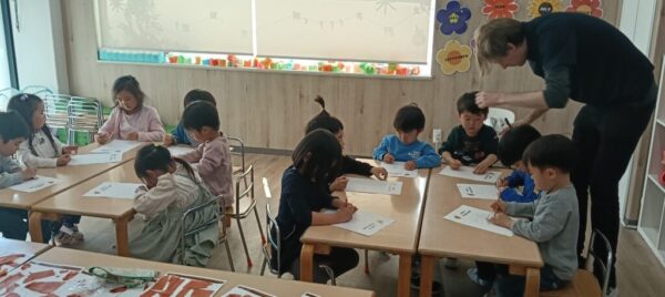 六角形の台紙を元にかいていきましたが、中々難しかった様子の子どもたち。それでも一生懸命に挑戦してくれましたよ⭐︎