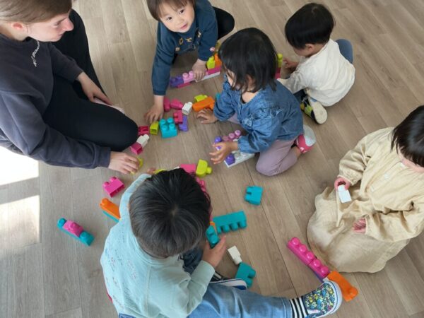 プレスクールでは、ブロックを使ってアリのお家を真似してみたり、