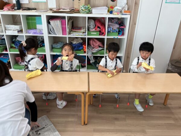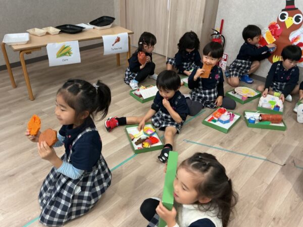 全員で「Open shut them ♪」のいただきますソングを歌ってからごちそうを食べました。
