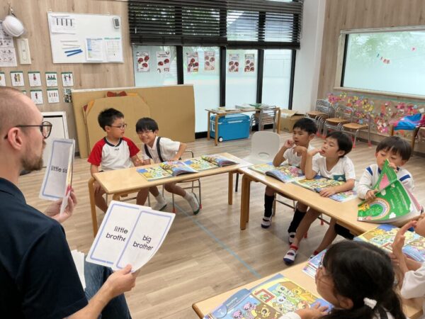 その後、Big brother(兄), little brother(弟), big sister(姉), little sister(妹)の違いを絵カードを見ながら確認し、みんなの兄弟姉妹についているかどうか聞いていきました。