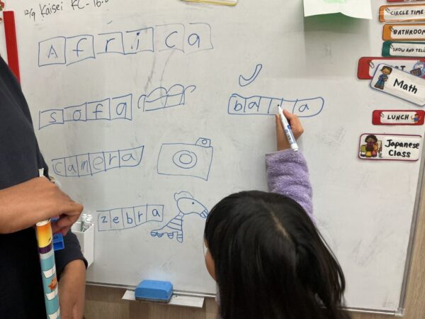 次は1人ずつホワイトボードに絵を書いてもらい、他の子どもたちでそれが何か予想するゲームです。