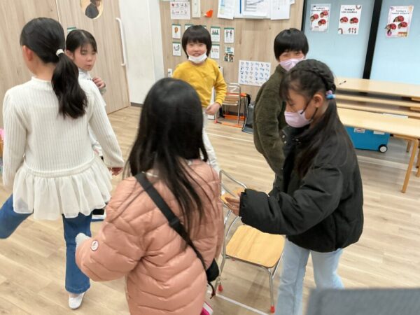 椅子取りゲームもしました。負けず嫌いな子どもたちは、絶対に負けない!と一生懸命です^^