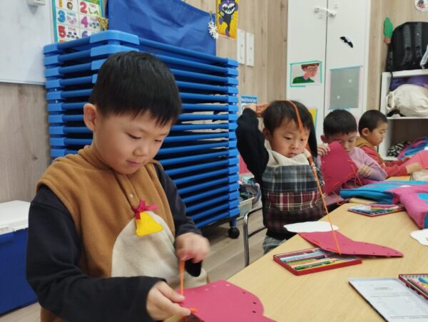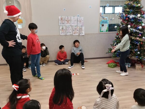 キンダーのお子さまたちはクリスマスの歌で踊ったり、クリスマスの絵本を読んだり