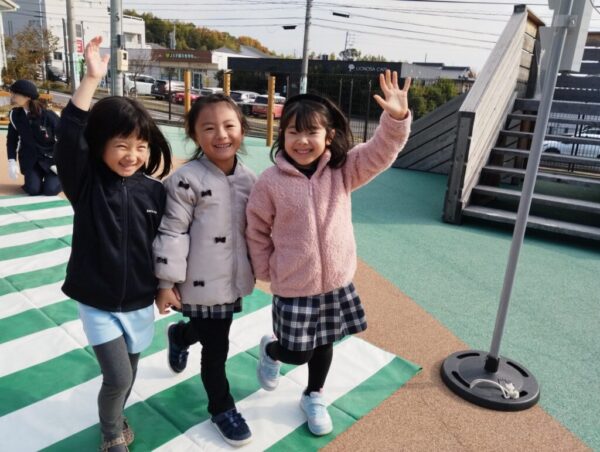練習用の信号機と横断歩道も持ってきていただき、みんなで「右、左、右!よし!」と練習しました!