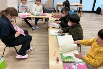 土曜園児クラス“actions” 今週は“walk, turn around, jump”など、動きを表す単語について練習を行いました。 ピクチャーカードを見ながら発音の練習をしたり、実際にその動きを試してみたりしました! “wash my body” “wave” “read a book” “take a picture” 体を動かすことで、その言葉が何を表すのかわかりやすかったと思います。 Well done, everyone!! Categories: 徳重校