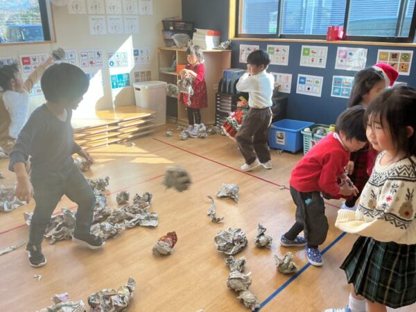 Snow ball fight(雪合戦)を新聞紙ボールでしました!