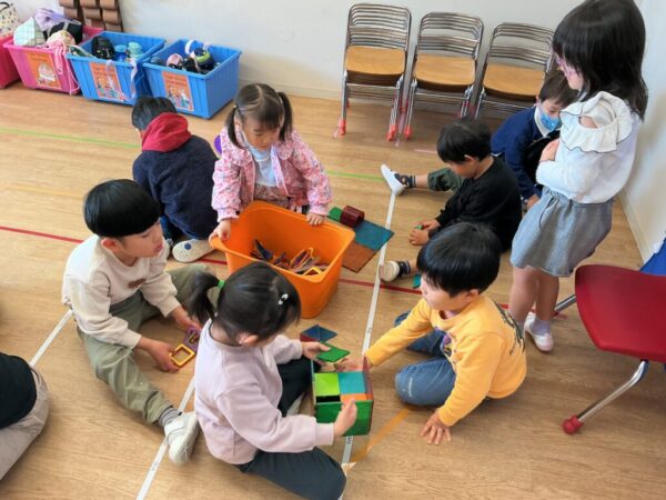 お友達と協力して大きなお城を作ったり、三角形のブロックを使ってPizzaを作ったり♪ブロックでの遊びは無限大です☆