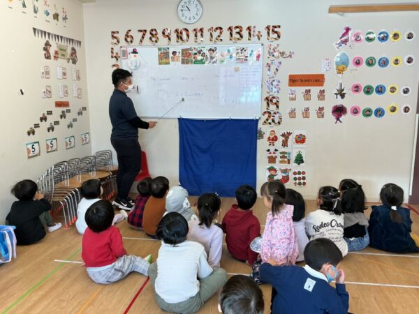 Marz講師から、『What do you want for Christmas present?』と尋ねられると、お子様たちからは、「DS2!!」や「Chiikawa!!」「Sumiko」など、さまざまな声が聴こえて来ましたよ🎁