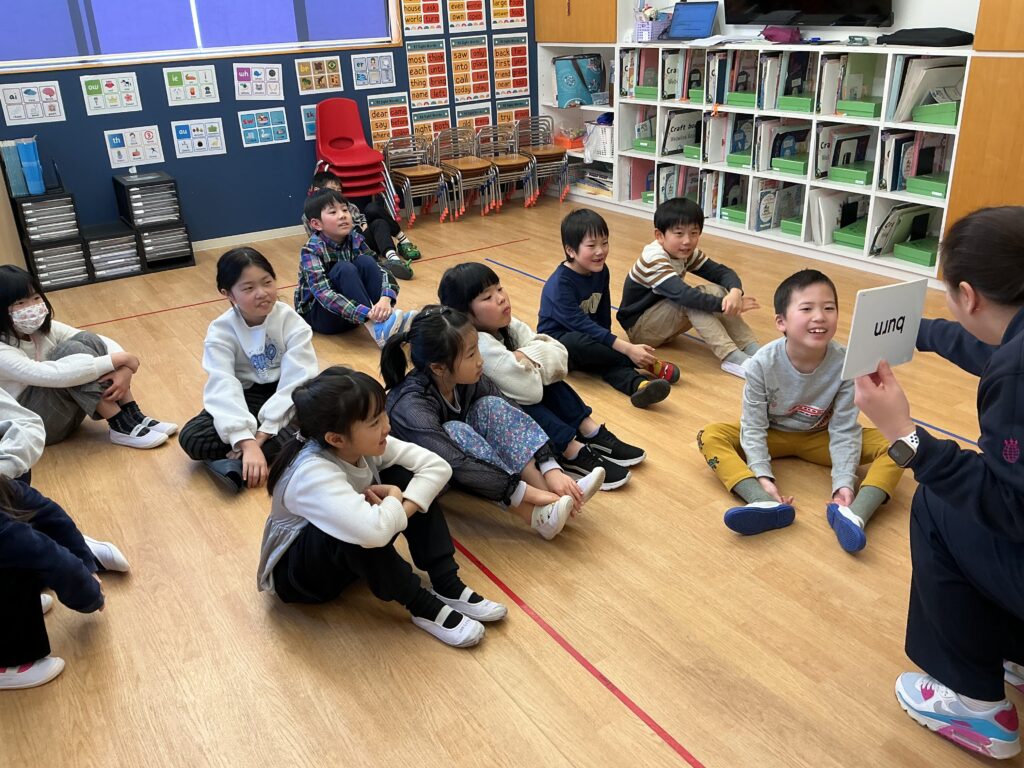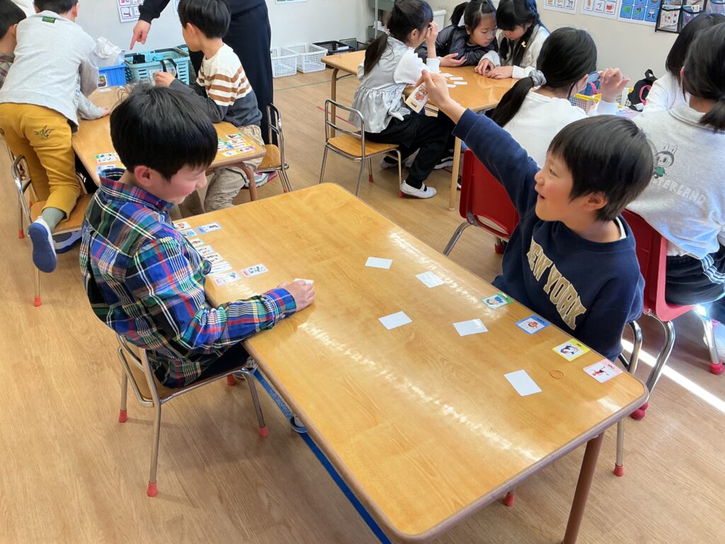 動詞カードを使って「現在進行形」の練習をしました⭐︎
