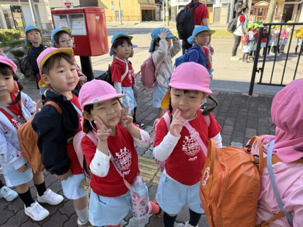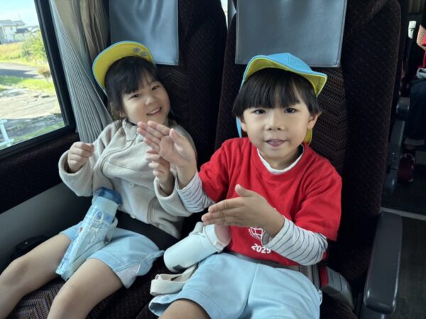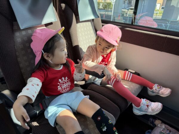 窓の外の景色を見ながら、「もうすぐお芋の畑かな?」「どんなお芋が掘れるかな?」と、胸を弾ませていました♪