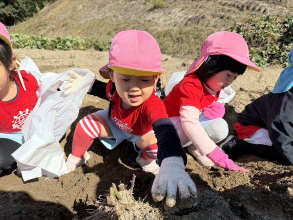 掘れば掘るほど、どんどん大きなお芋が顔を出し、みんなの目はキラキラ!みんなのやる気もどんどんアップしていきました!