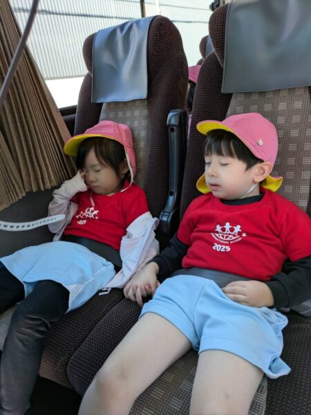帰りのバスでは、心も体もポカポカになった子どもたちの中には、ウトウトと夢の中へ…という姿も^^