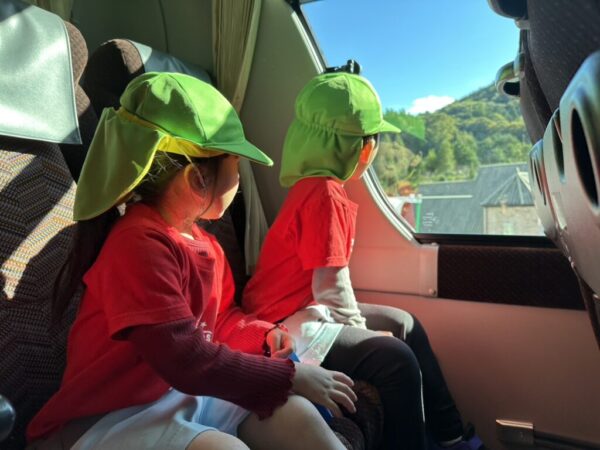 バスの中では「I Spy…」ゲームをしたり、英語の歌をうたったりしながら、あっという間に時間が過ぎていきます。