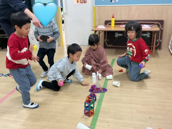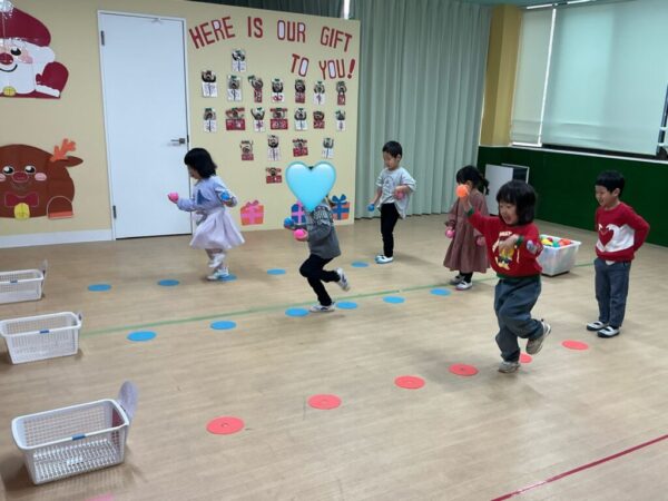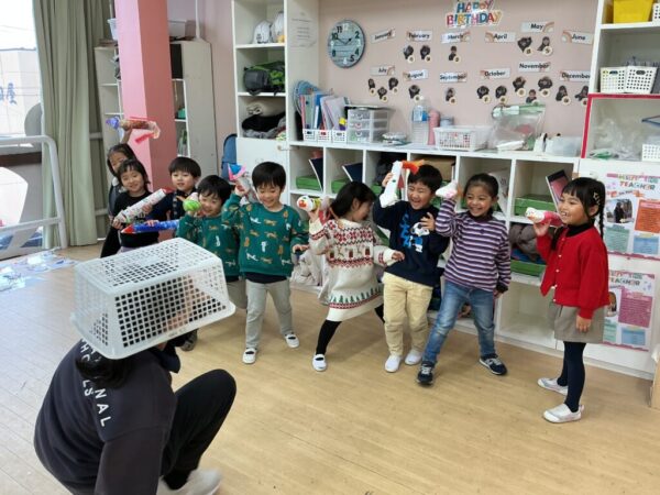 年少クラス、モンスターバスケットに1番ボールを入れられるのはどこのチームかな?