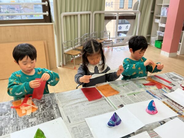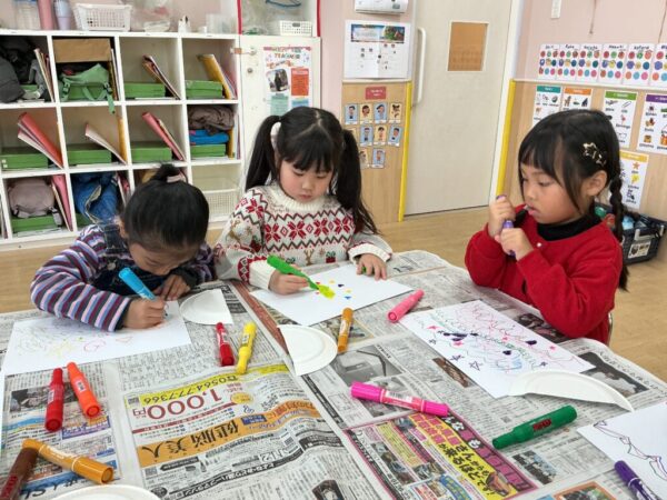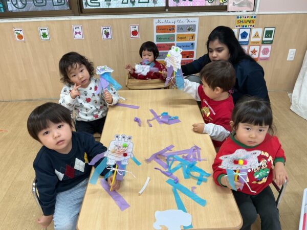 プレスクールではカラフルに色を塗り可愛いモンスターができました!