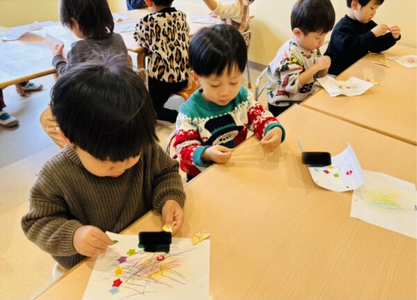自分の好きな色で塗って、シールで飾りつけをしました‼️