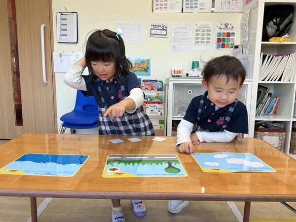 こちらは、イラストのカードを友だちと協力してマッチングさせるゲームを行っている様子です。🚗³₃