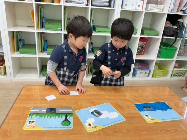こちらは、イラストのカードを友だちと協力してマッチングさせるゲームを行っている様子です。🚗³₃
