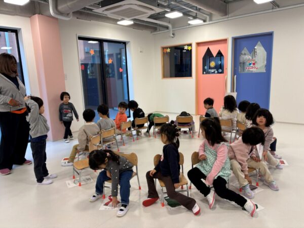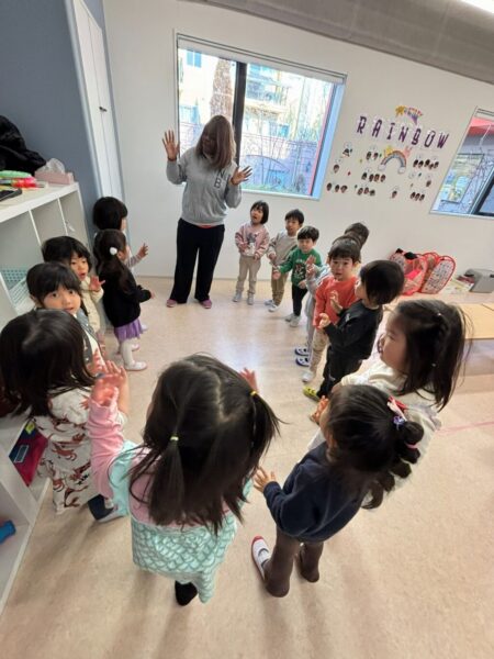 今週はぐっと冷え込み、体調を崩しやすい季節となりましたが、Acornクラスのお子様たちは今日も元気いっぱいに参加してくれました。寒さに負けず、笑顔で登園してくれる姿に、私たちもたくさん元気をもらいました。
