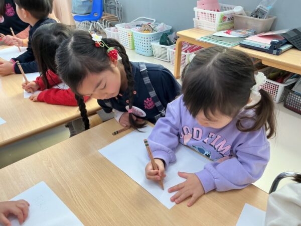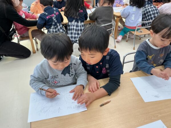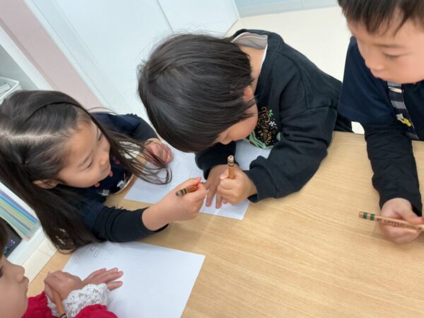 色鉛筆を使って色を塗ったり、絵を描いたり、単語を書いたりみなさん今日もたくさん頑張りましたね!