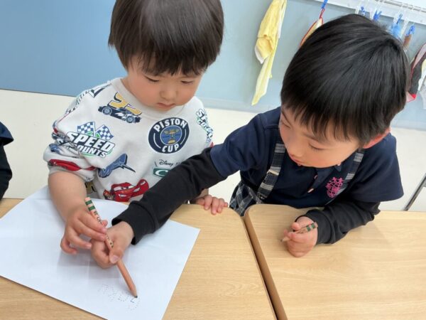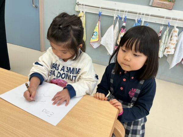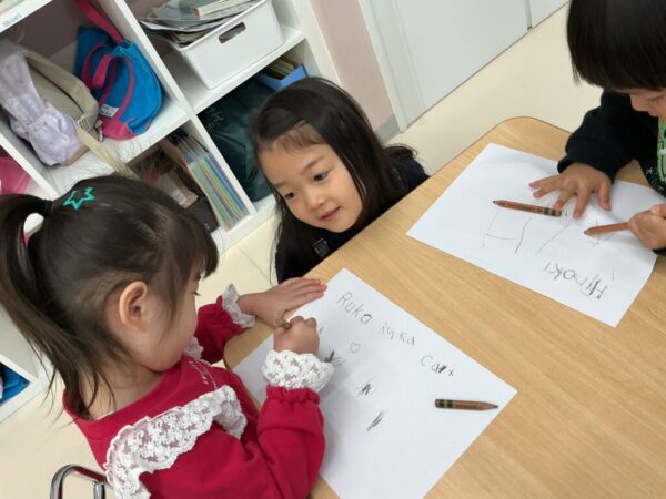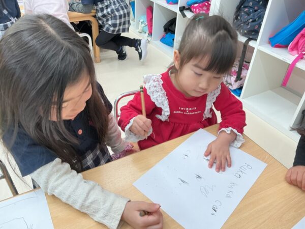 Ocean kidsのお兄さんお姉さんからアドバイスをもらいながらお名前を書いてみます。
