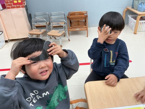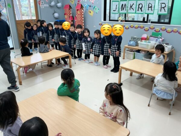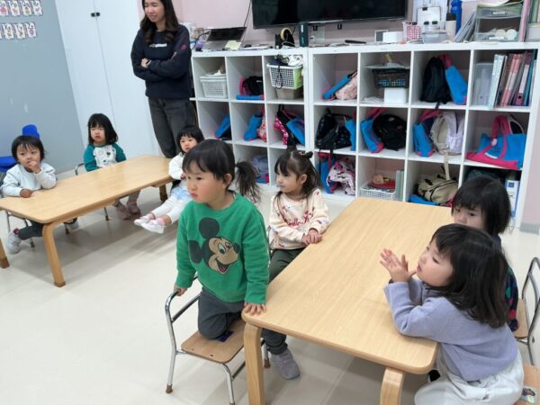Kinderから Safari Kids(年少クラス)がAstro Kids(2歳児クラス)の教室に来てくれて、