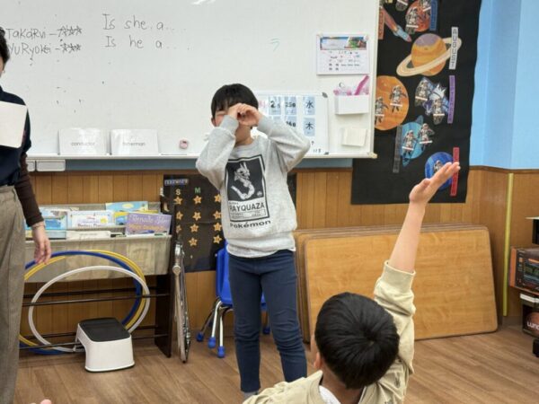 職業がわかっても英語が出てこなくて考え込む様子も見られましたが、お友達のヒントや記憶を辿って見事正解することができました!