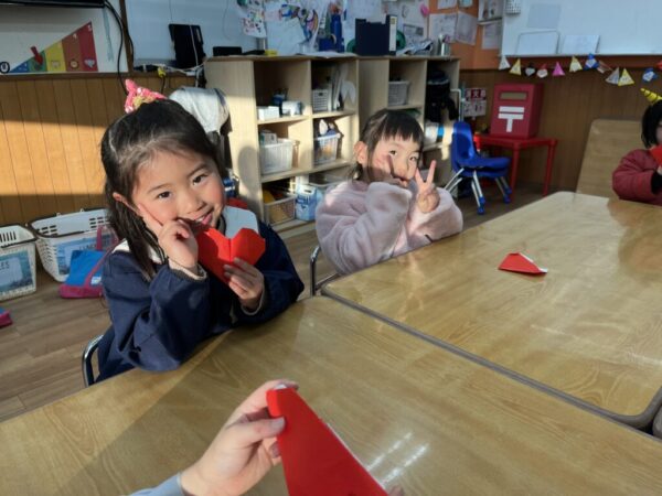 今回はバレンタインデーに向けてハートを折り紙で作りましたよ!