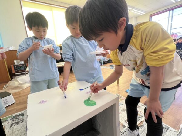 保護者の皆さまからオリーブの木を記念としていただくことになり、全員で一つの大きな植木鉢に絵を描きました。