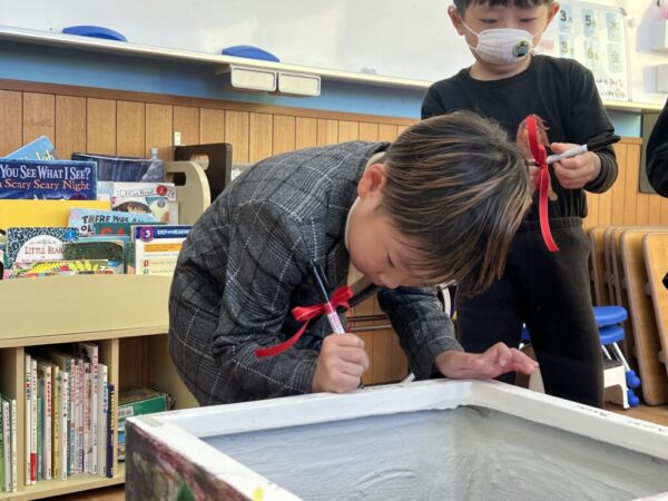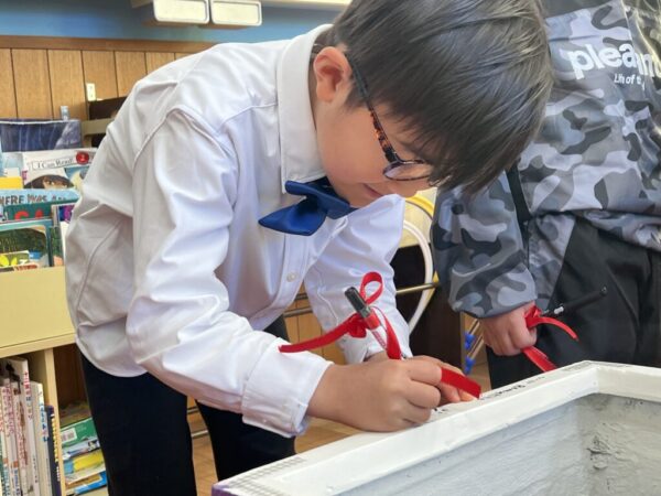 「This color is nice!(この色いいね!)」とお友達同士で見せ合う姿も見られ、にぎやかな雰囲気の中で制作が進みましたよ。