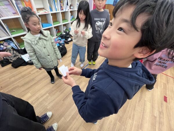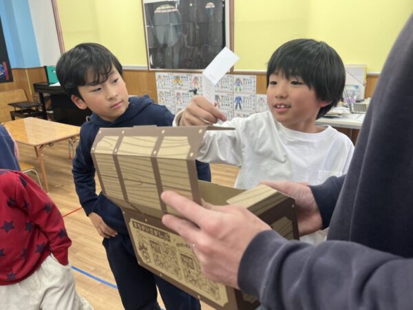クラスを2チームに分け、じゃんけんで勝った代表のお子さまがカードを引きます。
