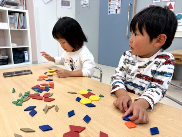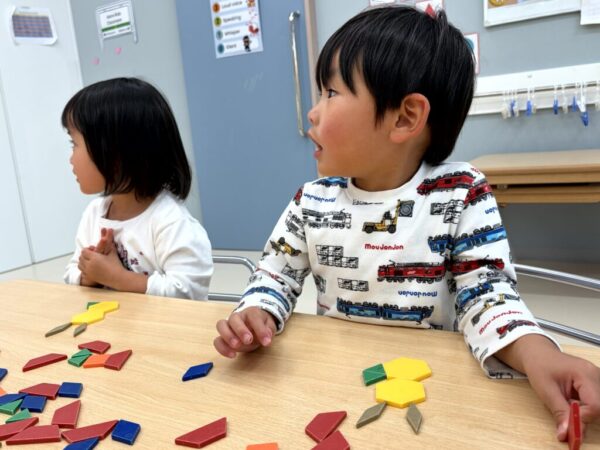 今日は色や形を学習すべく、様々な形でパズルを楽しみました♪