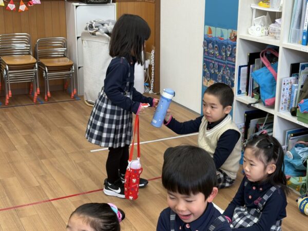 Drink Timeには水筒係さんが、水筒を回収してキレイに並べます。