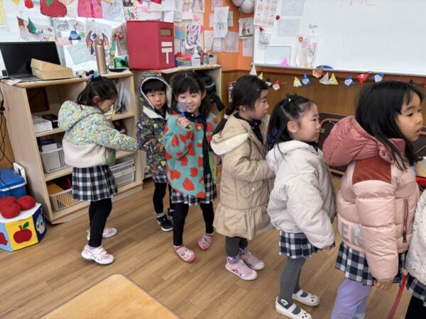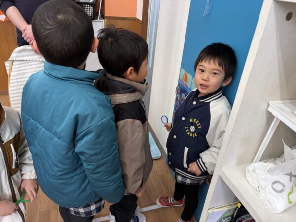 この日はサイエンスのレッスンで虫眼鏡を持って探検にいきました♪
