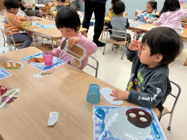 ロールプレイではおもちゃやカードを用いてお食事会をしました🍖