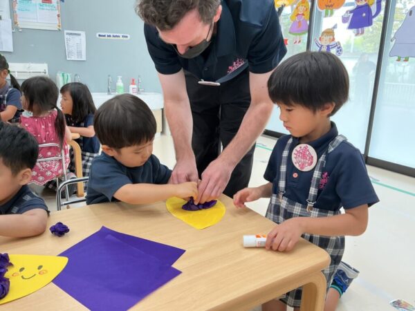またキンダーのお兄さんお姉さん達と工作を一緒にしました🍠