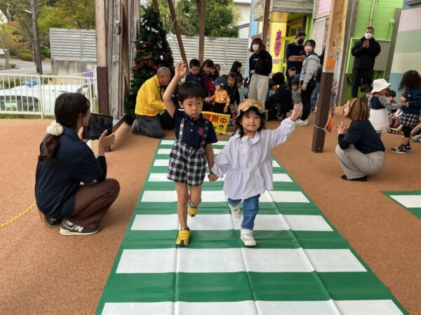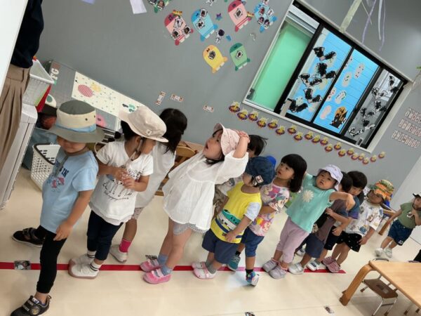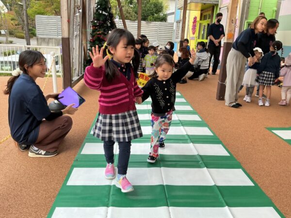 今回はOcean kids(年中)クラスのお兄さんお姉さんに手を引いてもらいました。