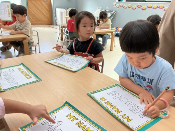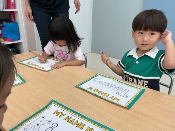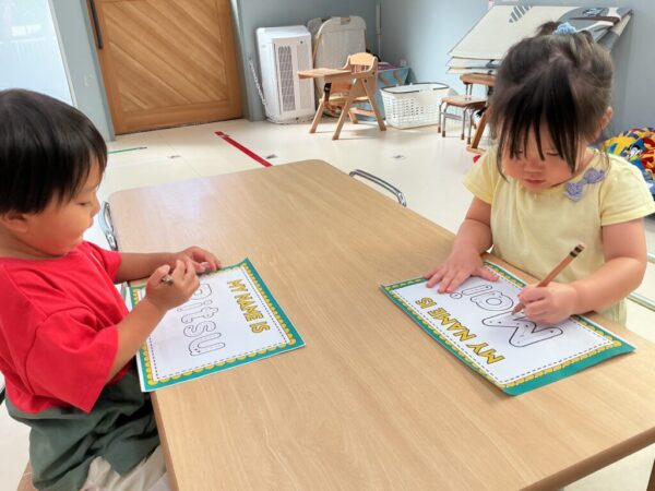 みなさん自分のアルファベットに興味津々で、鉛筆をしっかり握って取り組めました✏️
