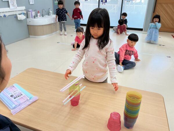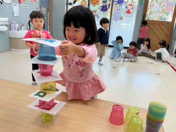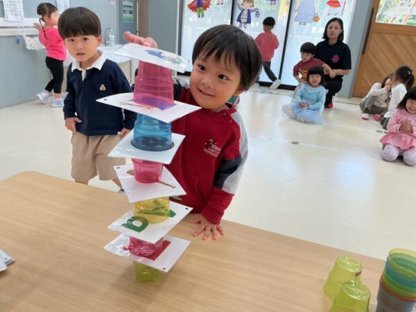 ゲームの時間では最近のお気に入りの「Stacking game(積み上げゲーム)」で遊びました!