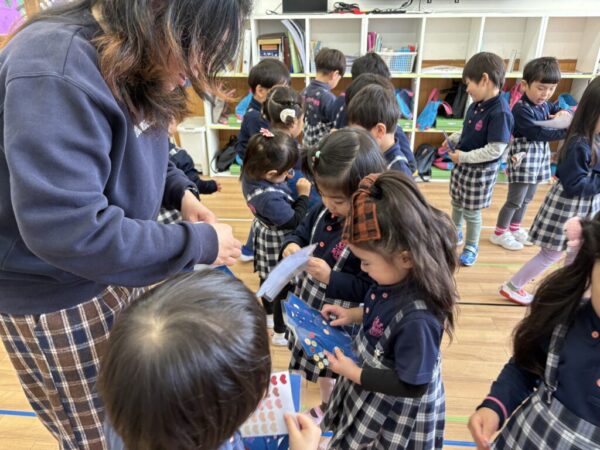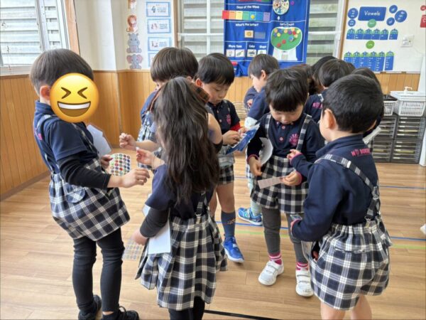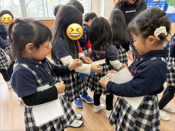 お子さま達は「Thank you!(ありがとう!)」「I love you!(大好きだよ!)」とお友達に伝えながらシールを渡していました。