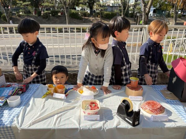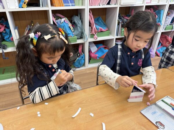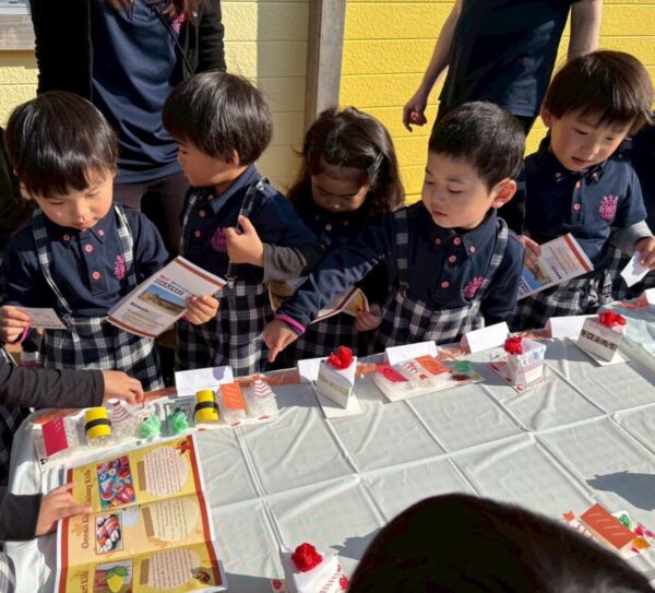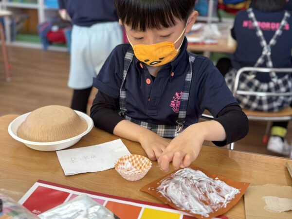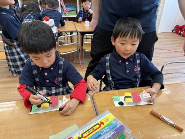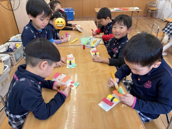 年中さんは「Sushi」「Cake」の内、1つを選び、真剣に取り組みます。