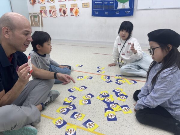 2つの音を組み合わせた発音を、カードゲームを通して学んでいます!