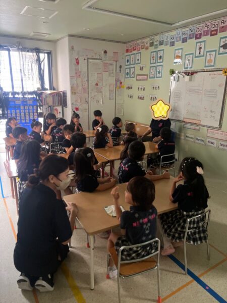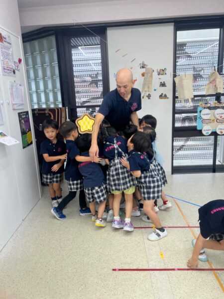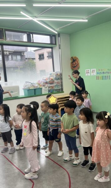 プレとキンダーの外国人講師が入れ替わり、アクティビティなどを行いました♬