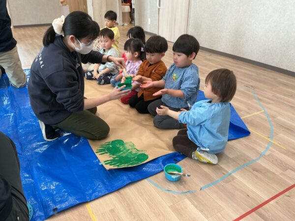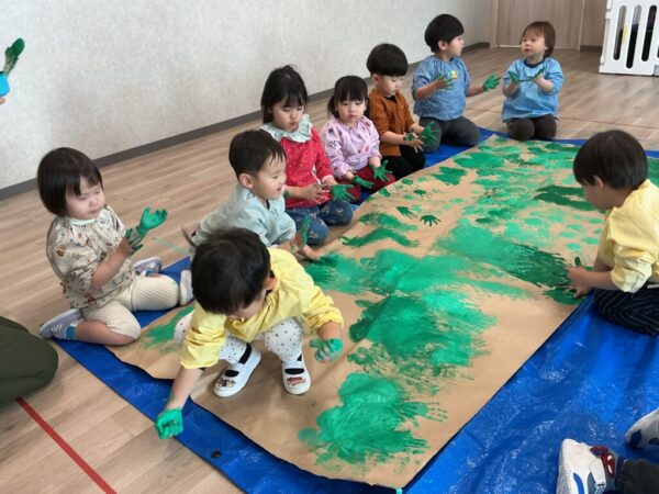 両手を使って、紙いっぱいに塗っていきますよ♪
