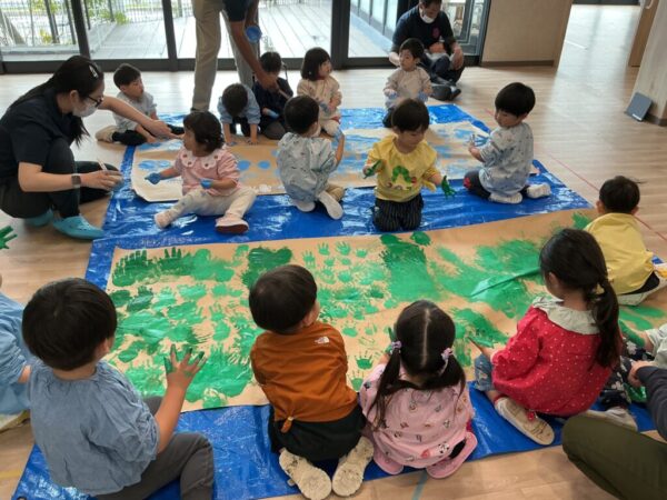 両手を使って、紙いっぱいに塗っていきますよ♪