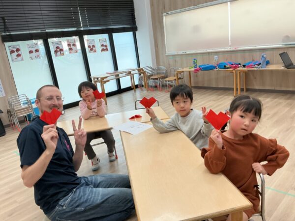 またこの日はスペシャルアクティビティー、もうすぐバレンタインなので折り紙でハートを作っていきました。