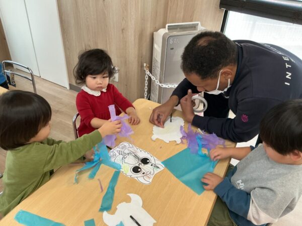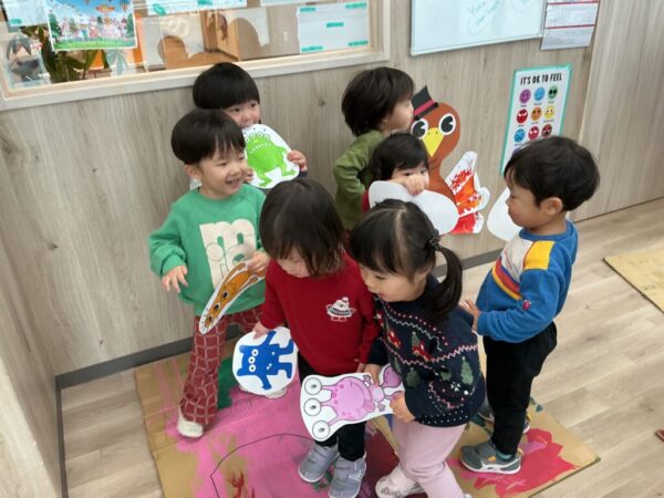 プレスクールクラスでは、皆で作った町の中でモンスターになりきりました☆